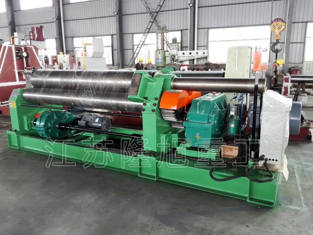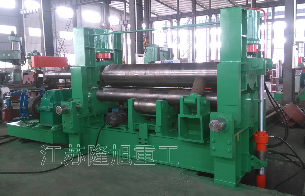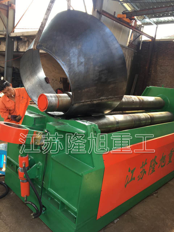 擋輪法的缺點是對工件一端的板邊有損傷。擋輪可繞自身軸旋轉,且能沿自身軸線上下竄動,擋輪表面淬火,這可減輕對板邊的損傷;在可能的情況下,將擋輪與上輥的距離拉大,既能減小擋輪與工件的作用力,也可增大對厚工件的作用力,這需要先預彎較長的板端。