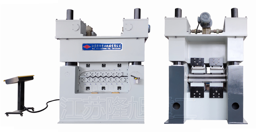 7. 在鋼板進行矯正時,機器盡量一次通過,不要停機,如因卡料導致悶車,按下主機停止或反轉按鈕,使鋼板退回,嚴禁操作控制活動梁的相關按鈕。
